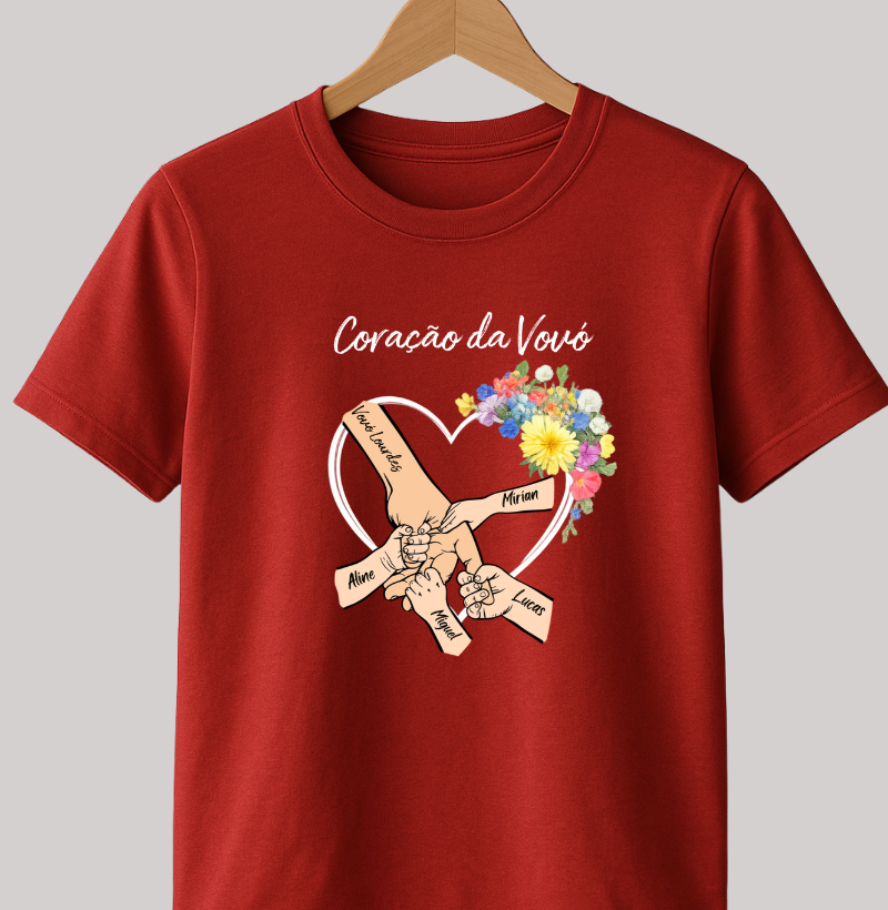 Camiseta Personalizada Coração da Vovó com as mãos dos netos